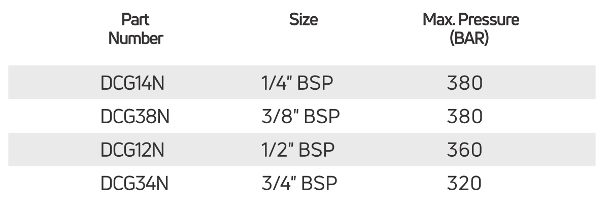 1/2" BSP, 1/4" BSP, 3/4" BSP, 3/8" BSP